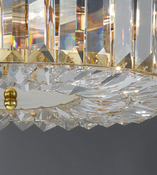 Nervilamp offers a 9-light ceiling lamp with an E14 socket (maximum power 42W), ensuring optimal room lighting. The lampshade is embellished with rectangular faceted plates of cut Crystal Schöler crystal.